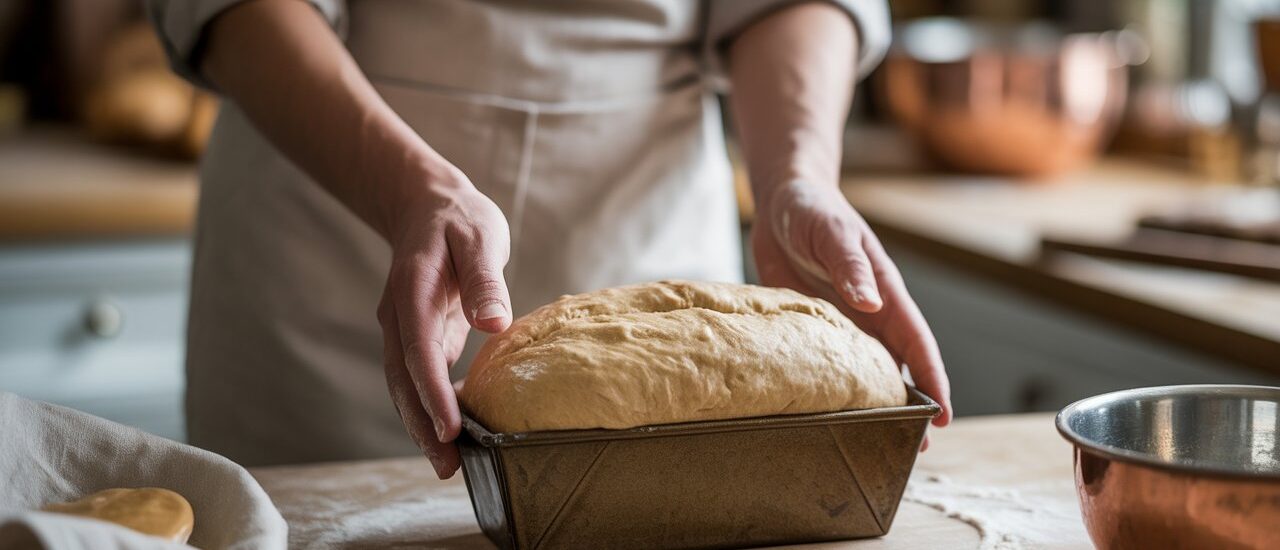 - Cover and let the loaf rise until it puffs to about ¾ to 1 inch above the rim of the mould (about 45–60 minutes). Don’t overproof — if it over-puffs it will collapse in the oven.
